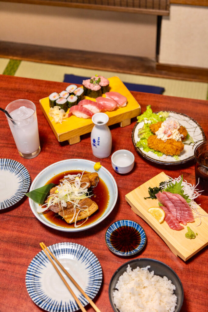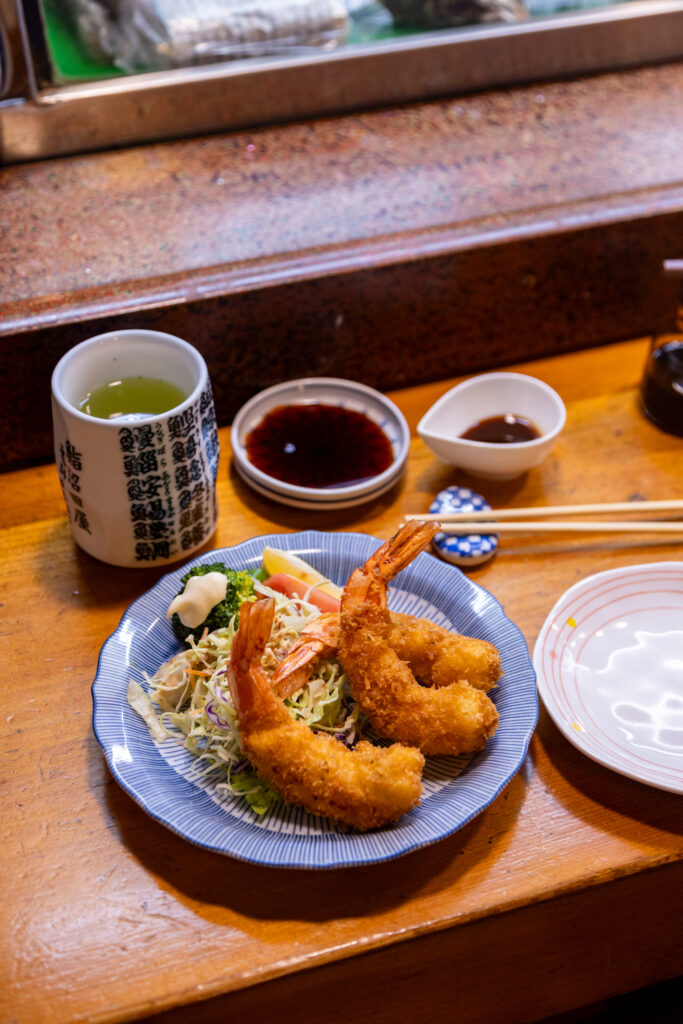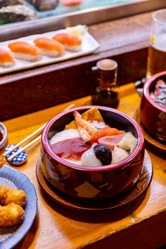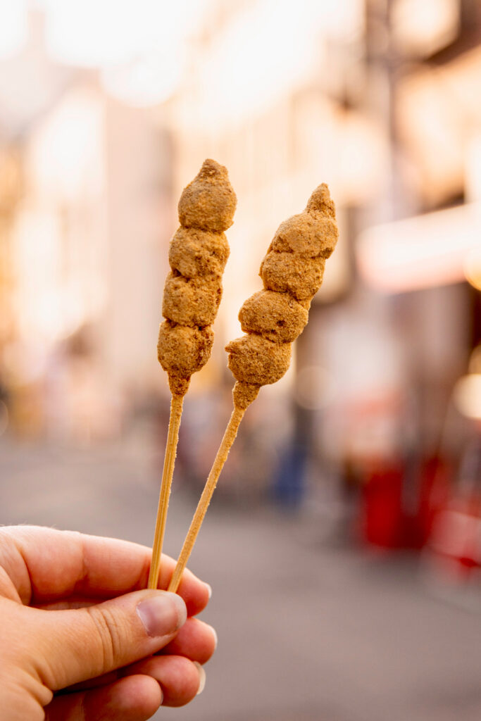 On y trouve des spécialités japonaises comme les yakitori (brochettes de poulet grillé), le oden (ragoût d’hiver) ou encore des snacks locaux accompagnés de bière ou de sake. La ruelle est très animée le soir, idéale pour une pause gourmande dans une atmosphère authentique et conviviale.