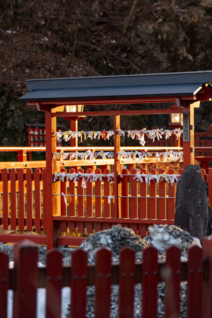 Ce sanctuaire est associé à la déesse Tagorihime, et on y vient pour prier pour la chance, les relations, la grossesse ou la naissance d’un enfant. Sur le site, il existe une porte torii spéciale où l’on peut tester sa chance en lançant une petite balle colorée à travers un trou pour réaliser une prière.
