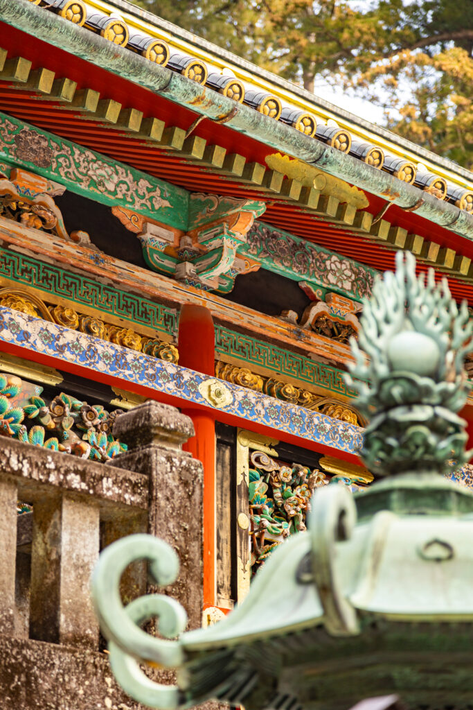 Construit au XVIIᵉ siècle, le sanctuaire se distingue par ses ornements riches et colorés, ses sculptures détaillées et ses bâtiments en bois finement décorés. Parmi les éléments les plus célèbres, on trouve les trois singes de la sagesse (ne rien voir, ne rien entendre, ne rien dire) et le célèbre chat endormi (Nemuri-neko).