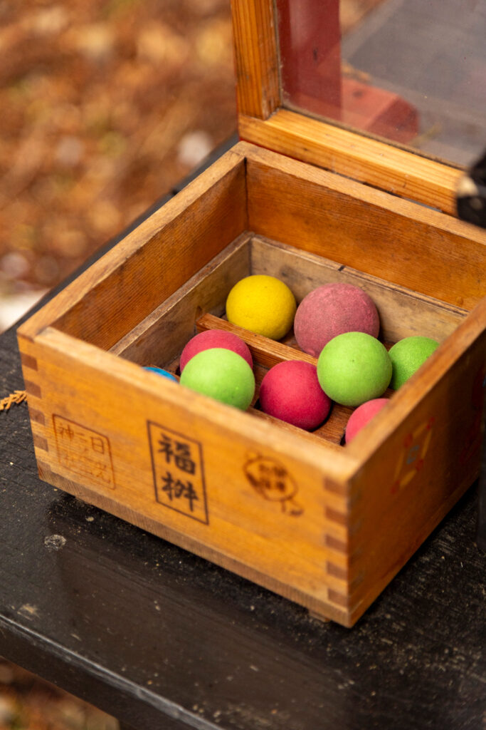 Situé à Kawagoe, le sanctuaire Hikawa est connu pour ses omikuji en forme de poisson (tai), symboles de chance, de bonheur et de prospérité dans la culture japonaise. Les visiteurs utilisent une petite canne pour « pêcher » leur poisson porte-bonheur, rendant l’expérience à la fois ludique et symbolique.