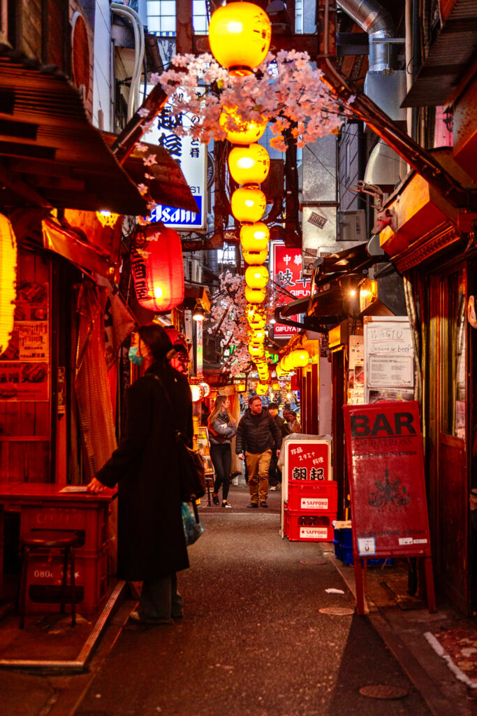 Omoide Yokocho est une ruelle étroite et pittoresque célèbre pour ses izakayas (bars japonais) traditionnels et ses petites échoppes de street food. Surnommée “Memory Lane” ou “Piss Alley”, elle a conservé son ambiance d’après-guerre, avec des lanternes rouges et des façades en bois, offrant un véritable voyage dans le Tokyo d’autrefois.