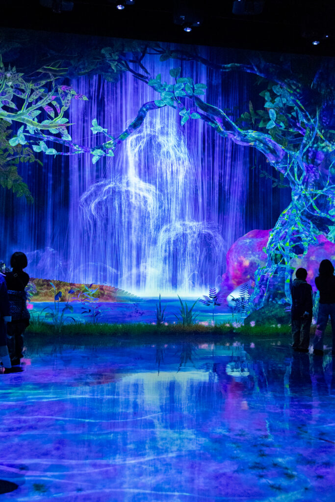teamLab Planets est une exposition numérique immersive située à Tokyo, où les visiteurs sont invités à entrer dans l’art plutôt que de l’observer derrière des barrières. Ici, les installations combinent lumières, projections, sons et eau, créant des espaces interactifs et sensoriels.