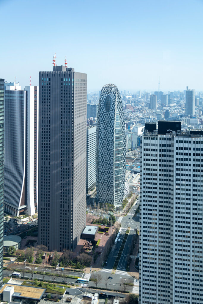 L’observatoire du siège du gouvernement métropolitain de Tokyo offre l’une des meilleures vues panoramiques de la ville. Les deux tours jumelles du bâtiment, hautes de 243 mètres, sont accessibles gratuitement au public et permettent d’admirer Tokyo à 360 degrés, jusqu’au Mont Fuji par temps clair.