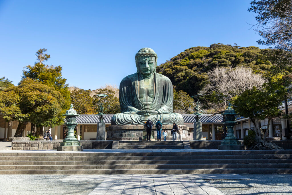 Le Kōtoku-in est un temple bouddhiste situé à Kamakura, célèbre pour abriter le Daibutsu, la grande statue de Bouddha en bronze. Cette statue, haute d’environ 13 mètres et pesant près de 121 tonnes, date du XIIIᵉ siècle et est l’une des plus emblématiques du Japon.